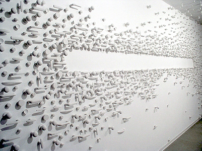 Mímesis. 2550 piezas de yeso blanco (distintas formas y formatos) desde el original. Ocupación aproximada en la galería 50 m cuadrados / dimensiones variables. 2004. Joachim Gallery, Berlín, Alemania